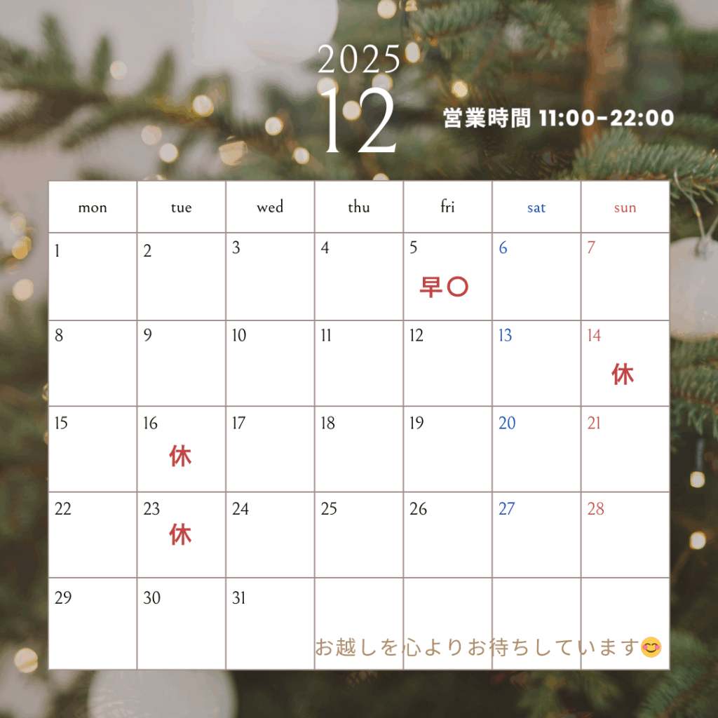 12月のスケジュールをお知らせいたします。