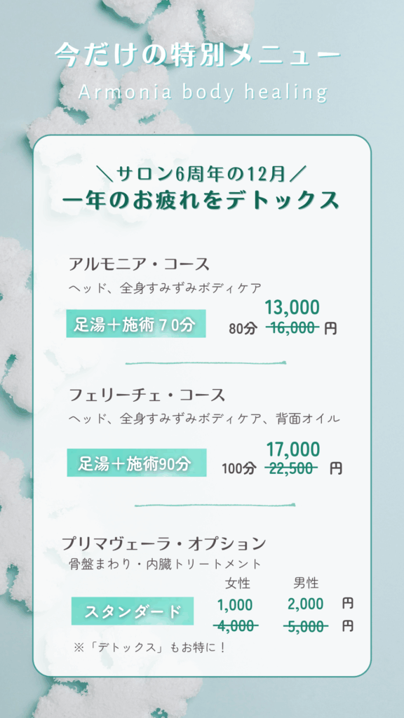 12月は、「100分コースにさらに20分延長」してじっくり解される方や、