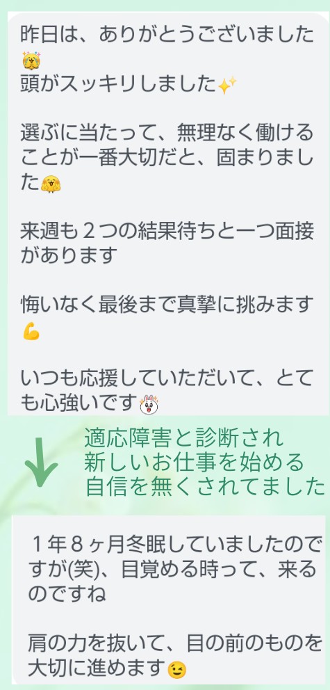 仕事を変えた自分の事を責めていました。今は再転職を考えているのですが、悲観的になって中々進まなかったので、気持ちが楽になって本当によかったです。