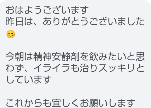 これだけコントロール出来なくなっていた感情をピタッと楽にできるなんて、本当に凄いですね。
